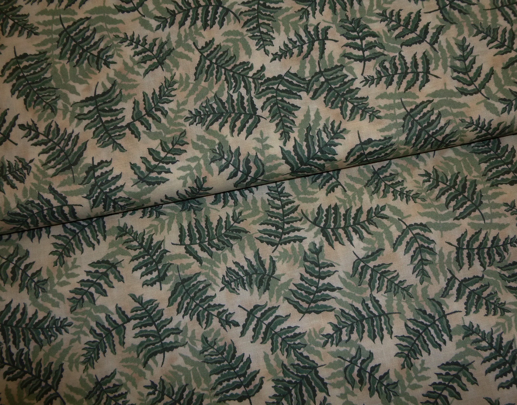 Stoff Farne auf grün-beige