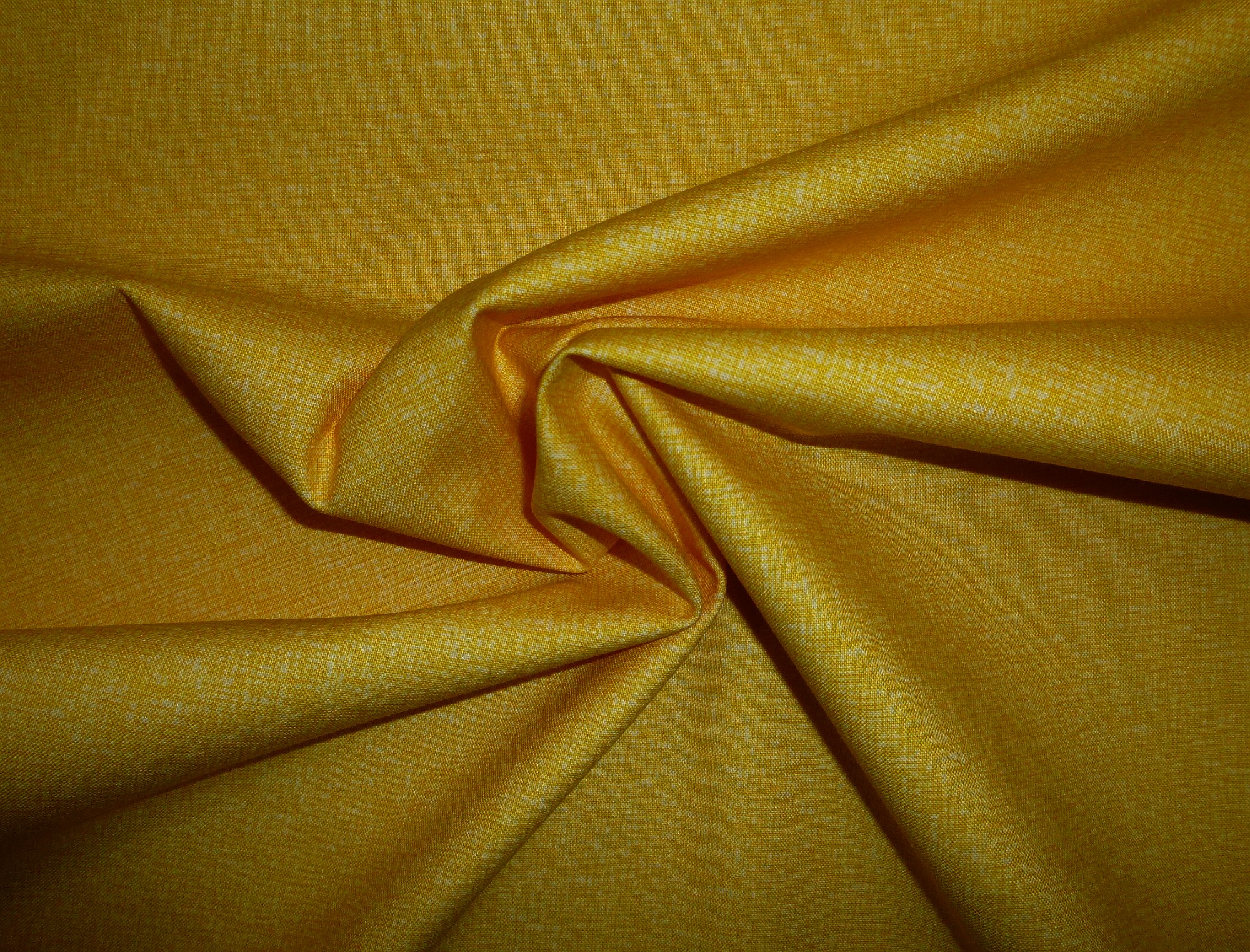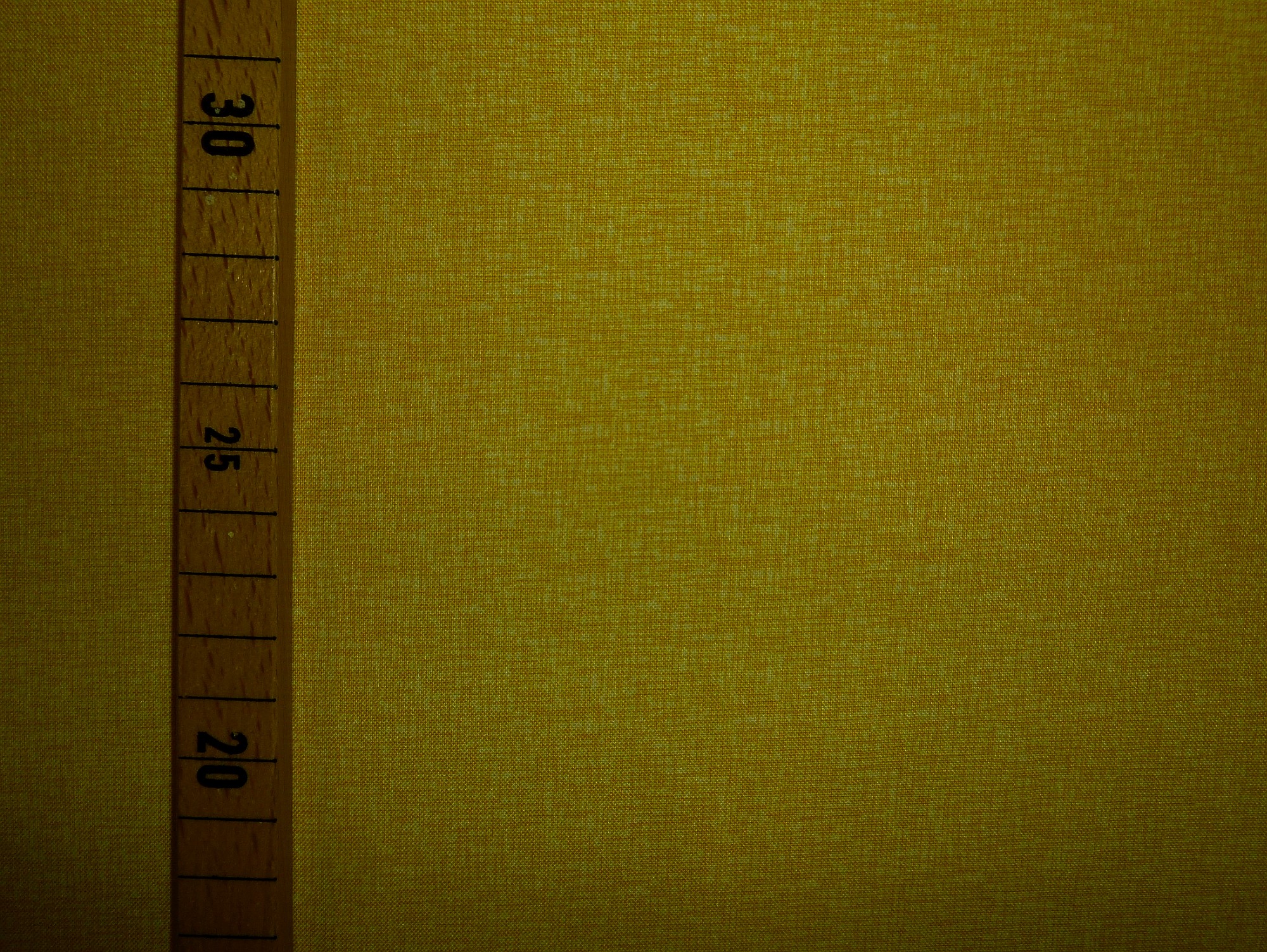 Ein hellgelber Basisstoff mit einer Längs- und Querstruktur in Web-Optik. Die Farbe läßt sich im Foto schwierig darstellen. Der Stoff wirkt gleichmäßiger gelb, die weißen Anteile sind sehr dezent.