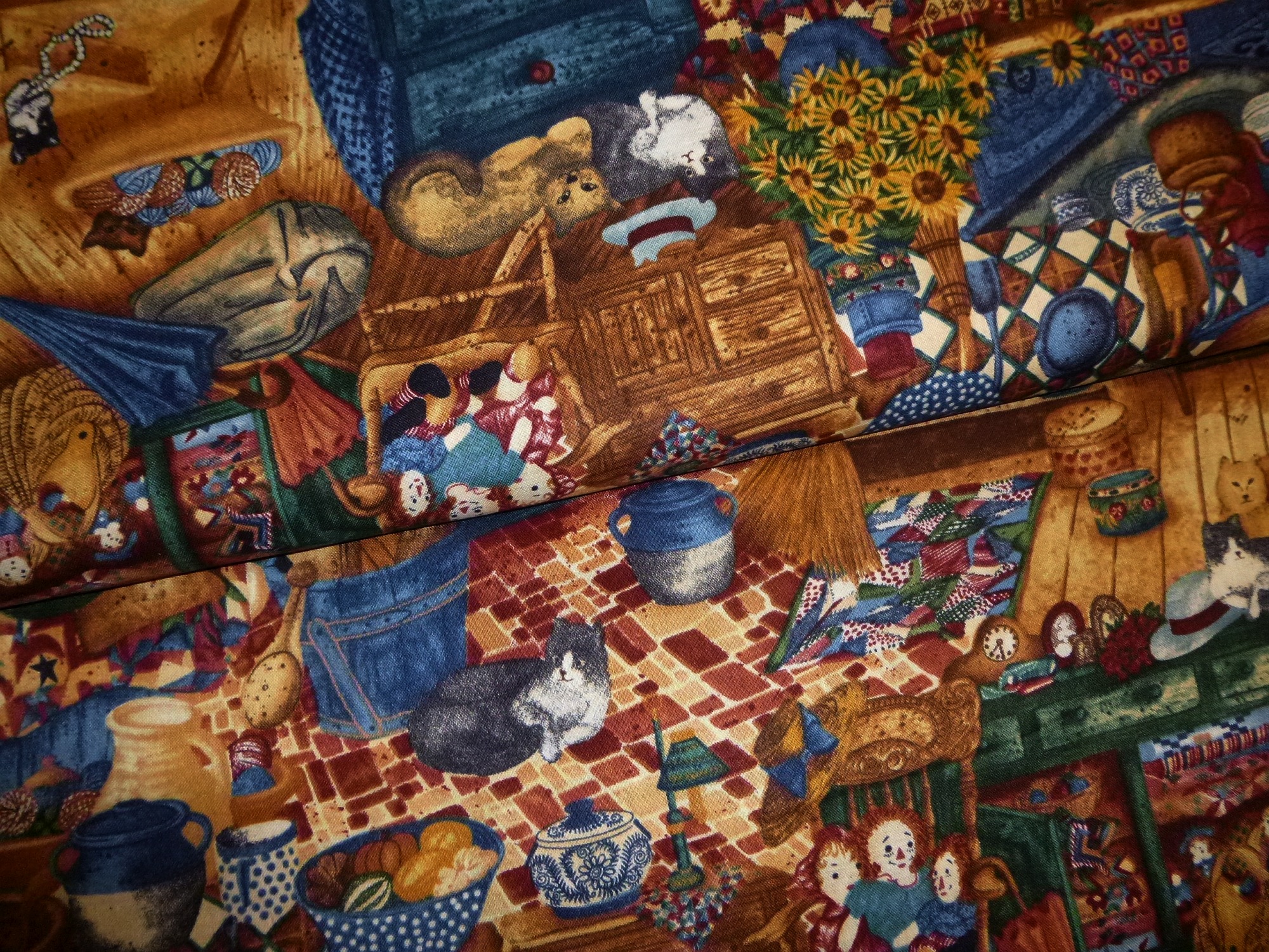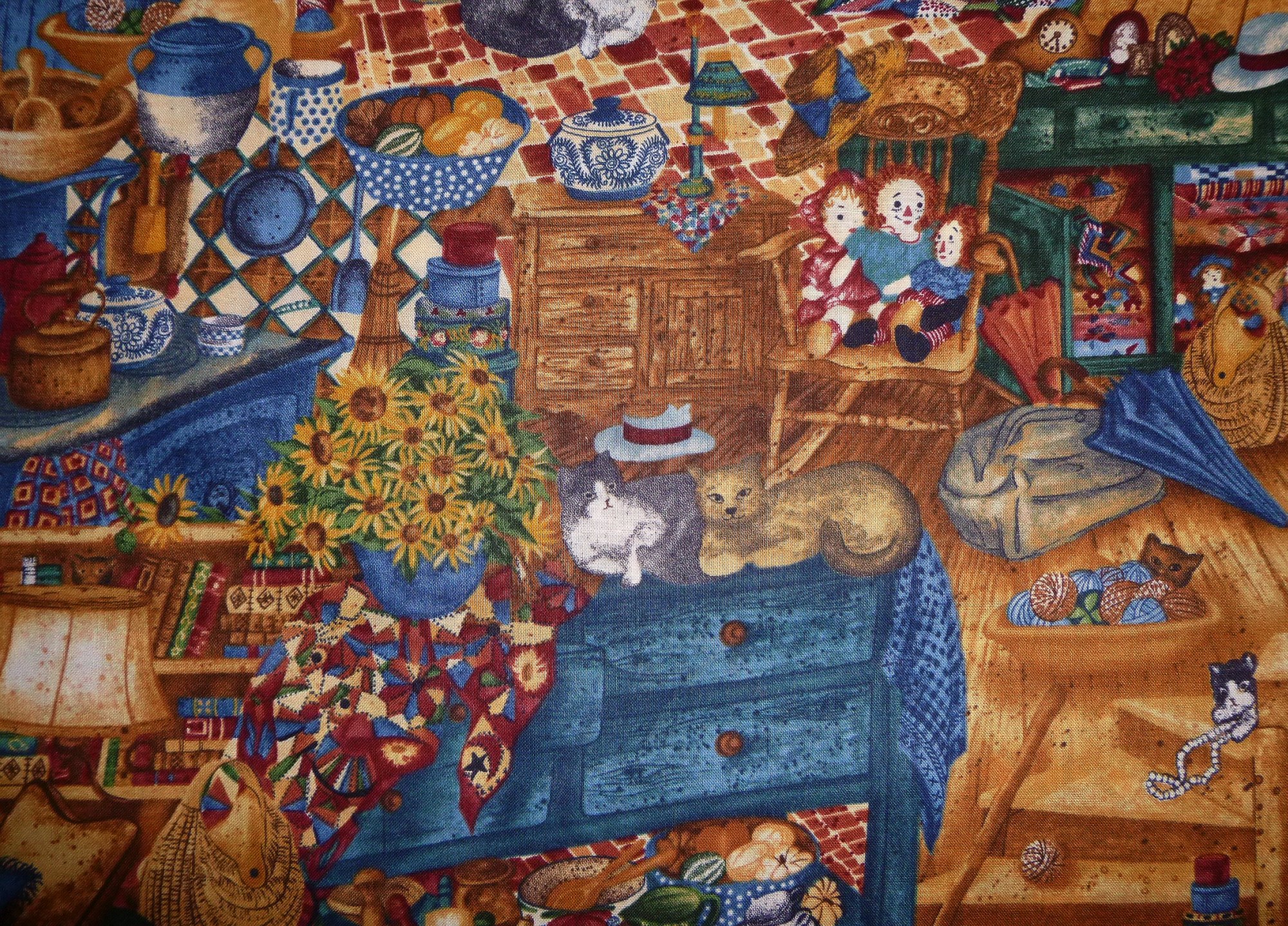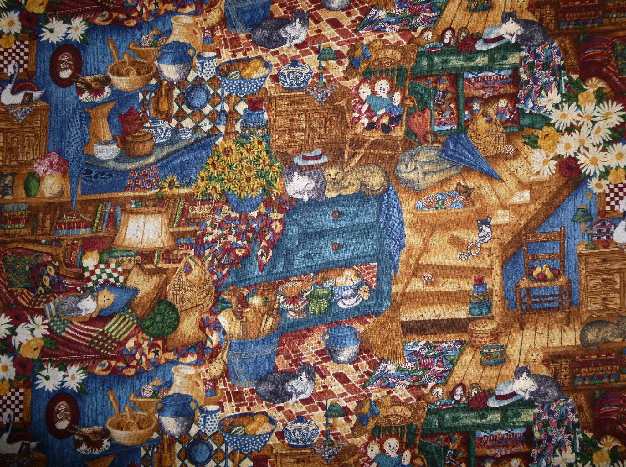 Ein Stoff, auf dem es immer wieder neues zu entdecken gibt. Er erinnert an die Dachböden unserer Kindheit. Der Rapport ist ca. 30 cm.